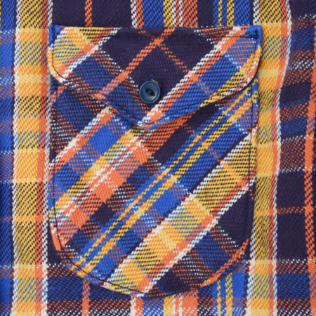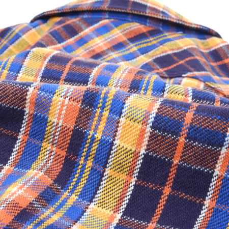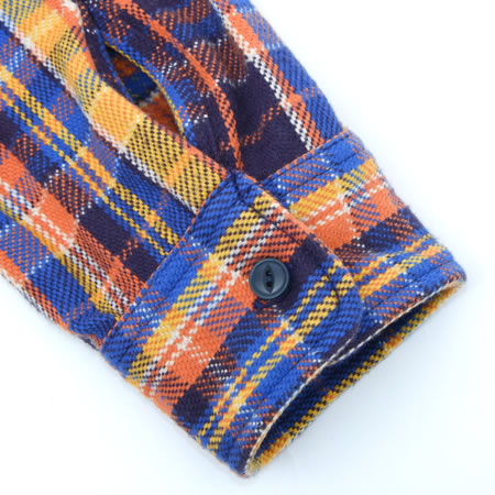 UESのヘビーネルシャツは、厚みのある生地と、力織機で織ることで表現される風合いが大きな特徴です。タテ糸とヨコ糸の打ち込みのバランスが良く、適度に生地が動くことで着心地が良くなります。生地の風合いを是非手にとって実感してください。直接染料を使用した先染めの生地は、着込むことで少しずつ褪色していきます。微妙な色のトーンが楽しんでいただけます。裏面に微起毛を施し、やわらかな肌触りと同時に、保温性も高めています。チェックの配色は白のラインが濃淡のメリハリを生み出しています。また、タテ糸の色の組み合わせは、微妙に色を変え多色使いすることで、ベーシックな中にも現代的な雰囲気を感じていただけるよう工夫しています。