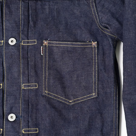 適度な太さが好評の400WW大戦モデルデニムパンツとセットアップで着用することを想定して企画したデニムジャケット「W900-J」。