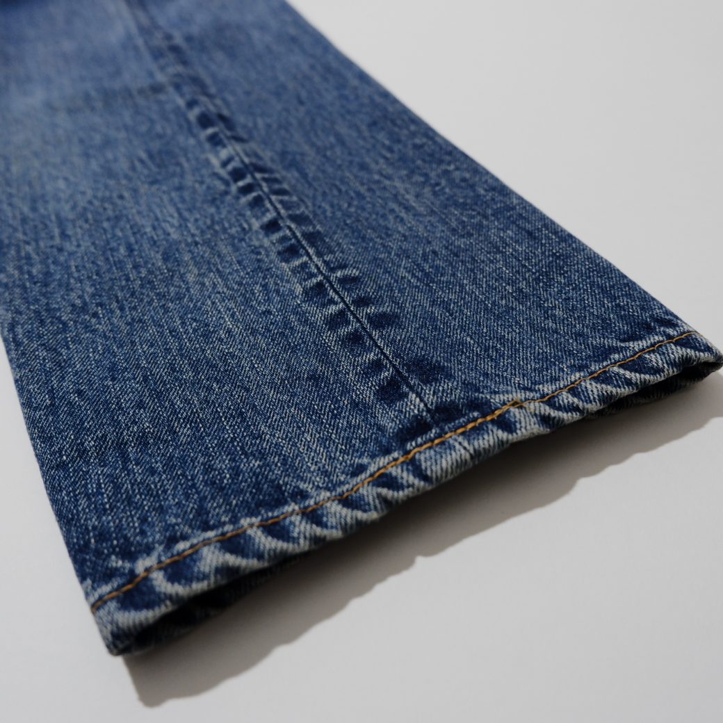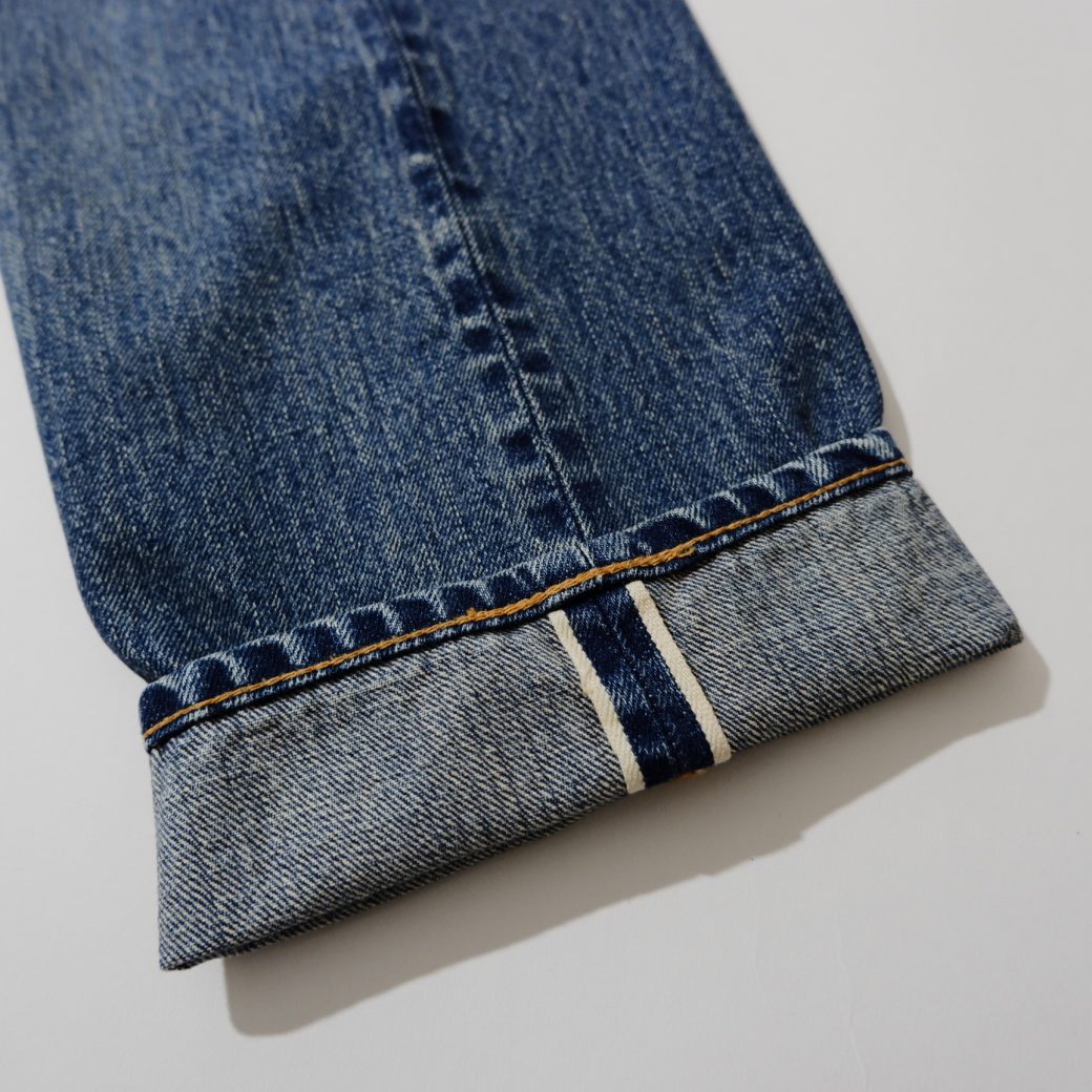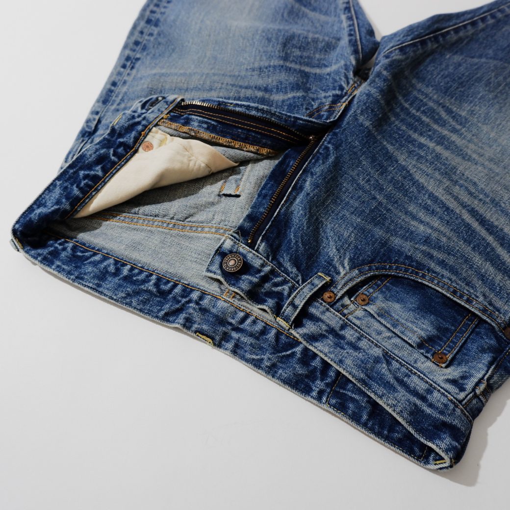 太腿にかけて少し丸みのあるジーンズをリプロダクト。当時の生地を分析し空紡糸のドライタッチな