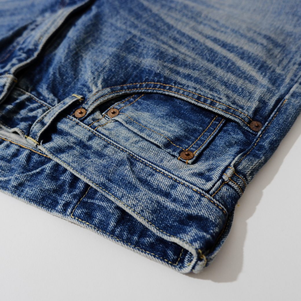 当時の質感を再現。ジーンズの一番美しい時期のインディゴブルーの経年変化を岡山の加工場で