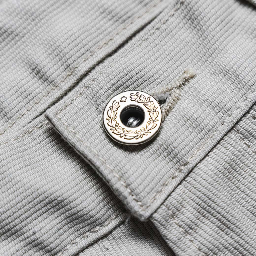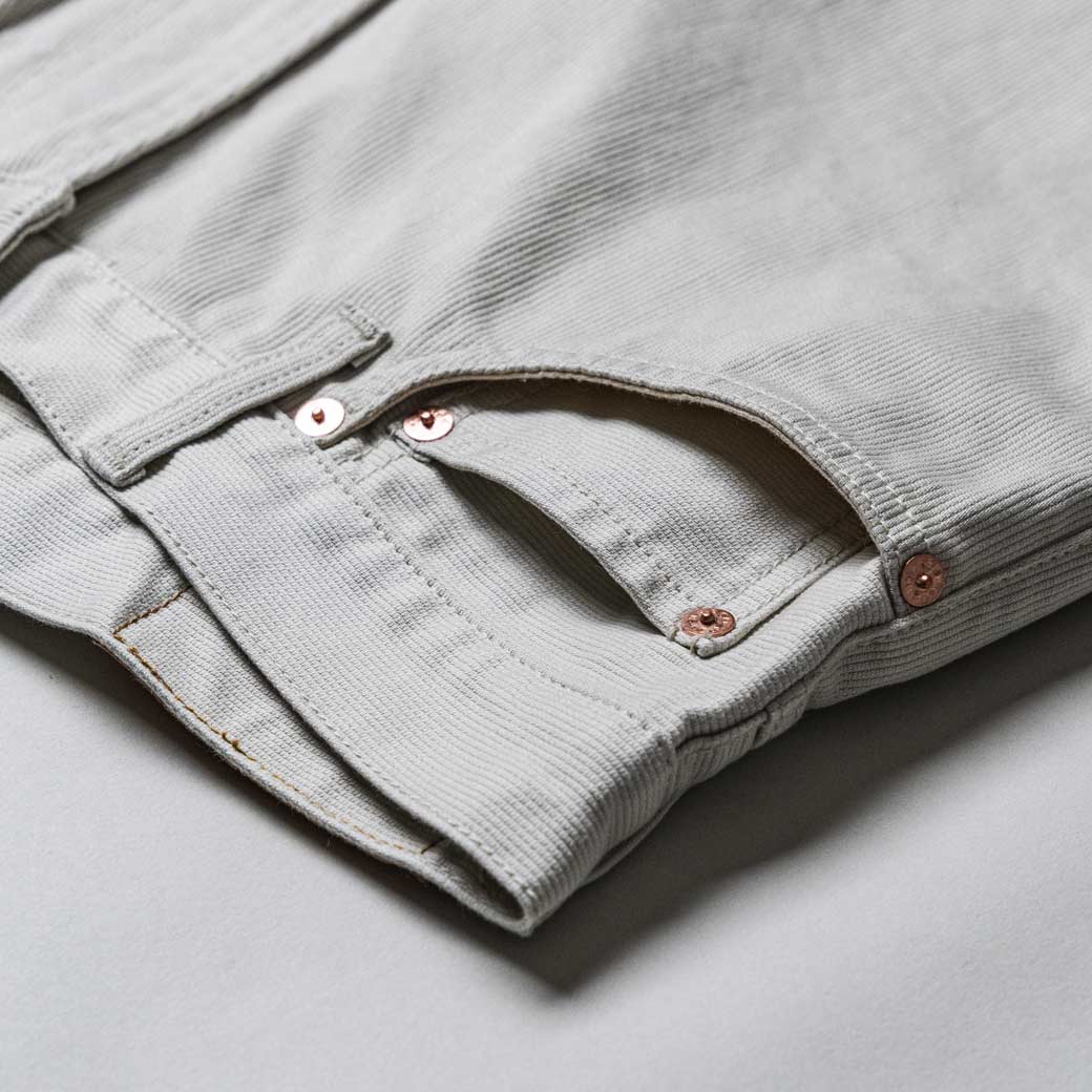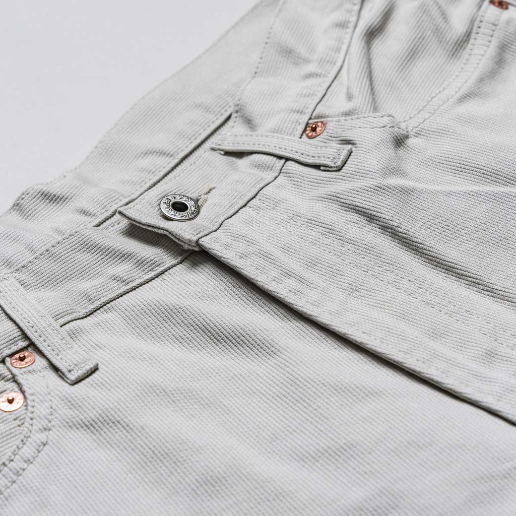 ヴィンテージの雰囲気漂うピケ素材を使用しながら、細身の程良いテーパードを効かせたカッティングが特徴。