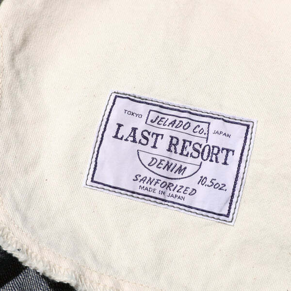 このテーマに合わせて、私たちはLASTRESORT“青タグ”と名付けた10.5オンスのライトオンスのデニムを開発し、40年代のペインターパンツを忠実に再現しました。
