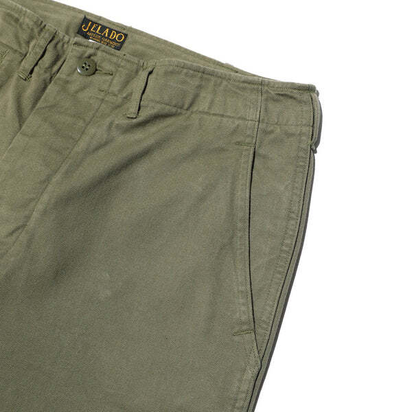 別布のチノ生地を使用。サイドシームのパッカリングも強く出てくるので、履いた時の