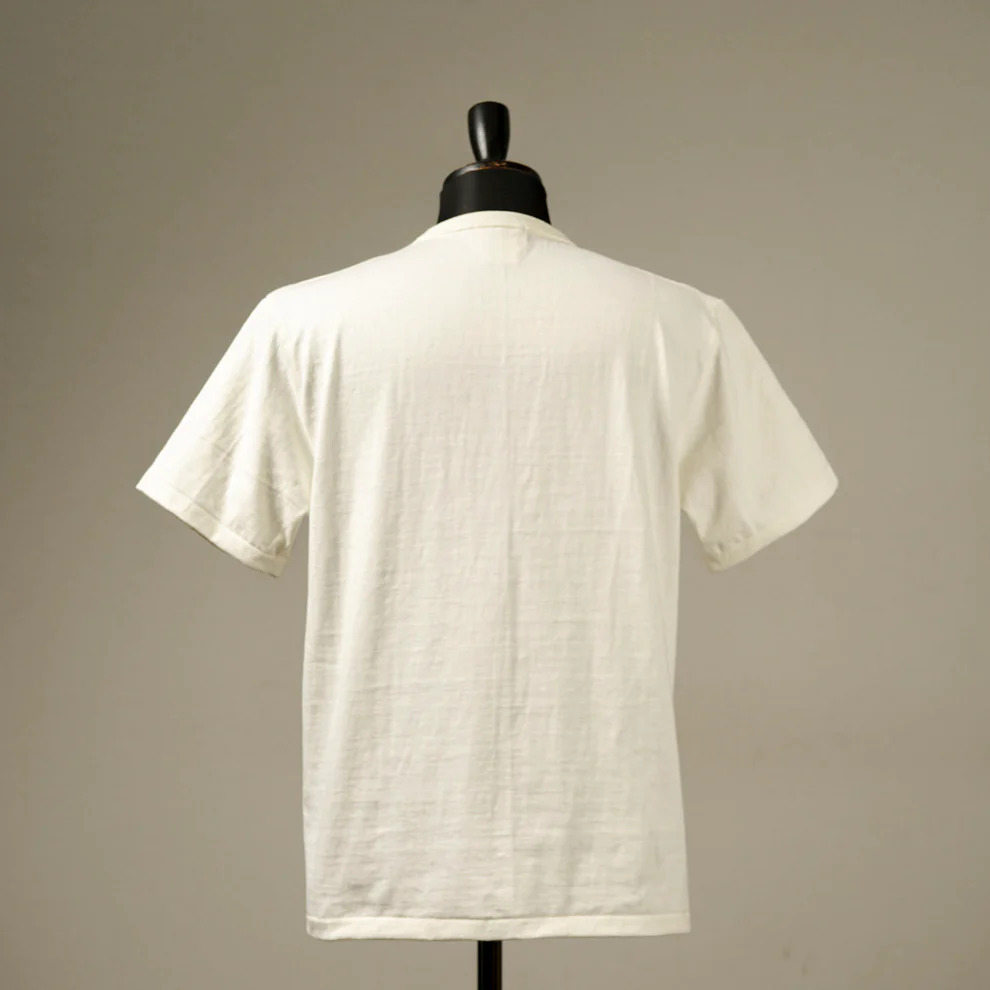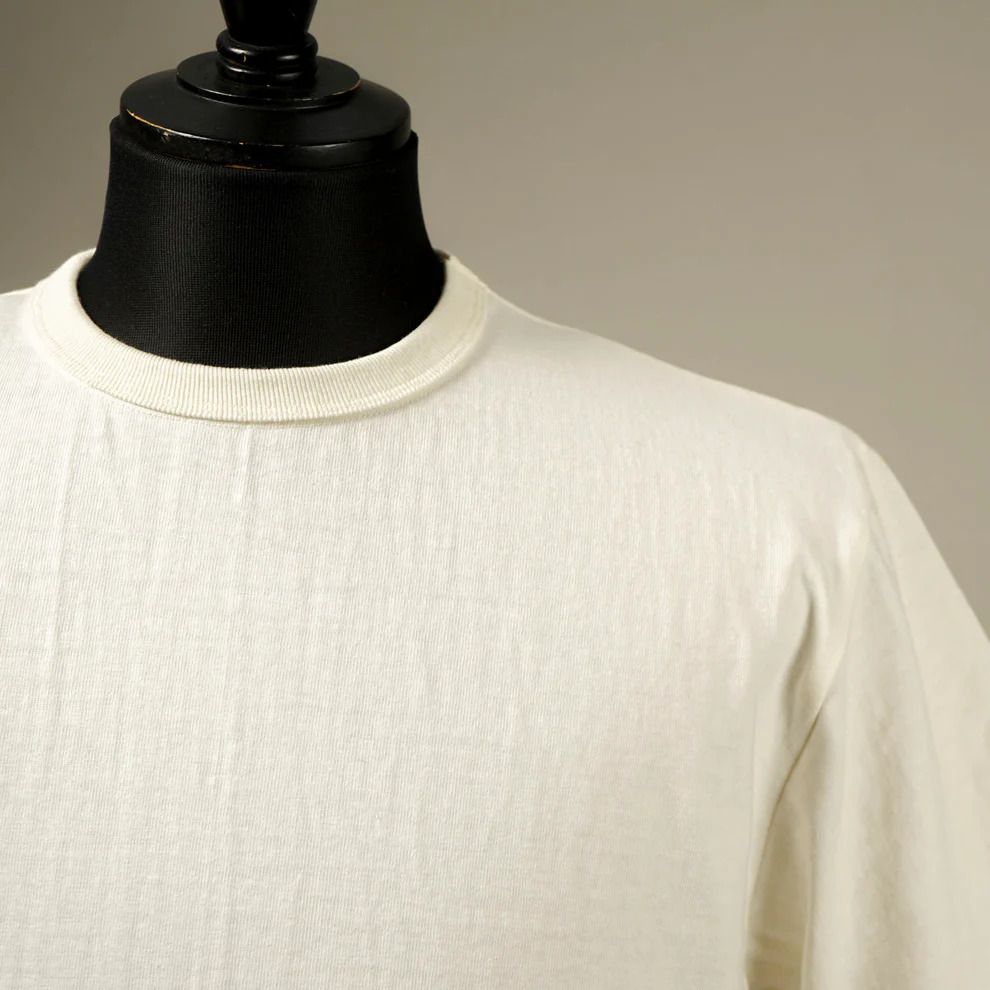 このT シャツの生地を編み込む為、世界的に希少な100 年前の吊り編み機を使用。