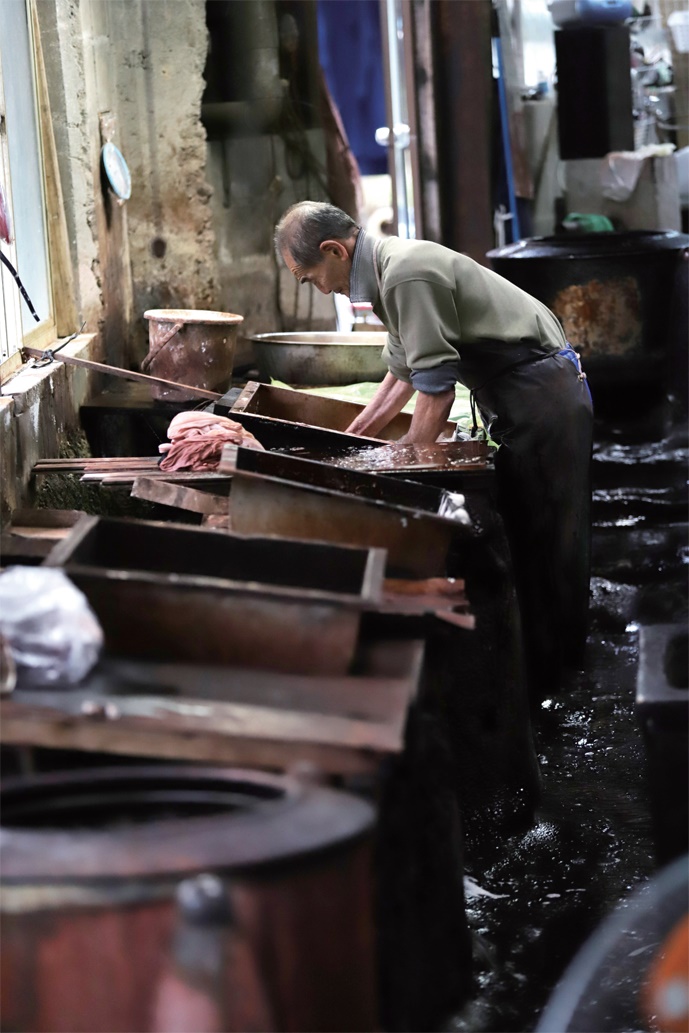 一点一点情熱をもった職人さんの手を介してつくられた泥染Tシャツは
