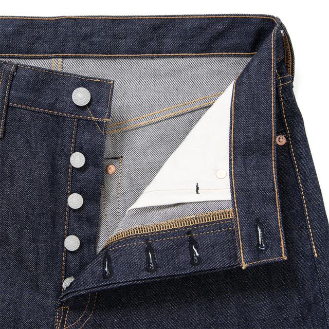 1953年当時のデニムを再現するため、意図的に全工程をローテクな手法で行っています。