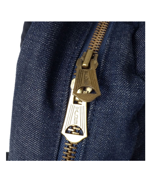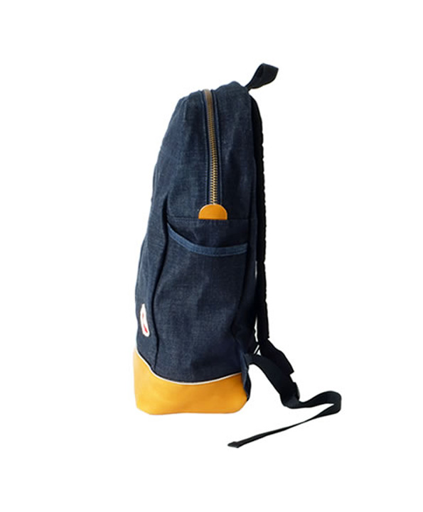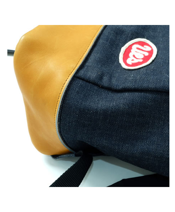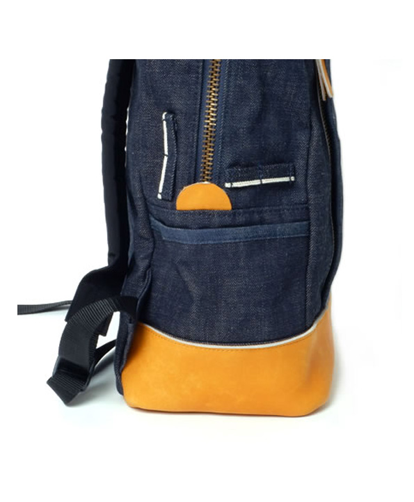 デニムにインディゴトリコチンを加えた2色展開。前回は底の革にスウェードを採用していましたが、今回は野球のグローブにも採用されるグローブレザーに変更しました。開閉は強度のある10番エレメントの大型ファスナーで大きく袋口が開くように設計。 鞄のサイドにはペットボトルが入る深いポケットと、反対側にはカラビナやナスカンを固定するためのループをタテヨコに配置し、小物が入る程度のポケットも設けました。