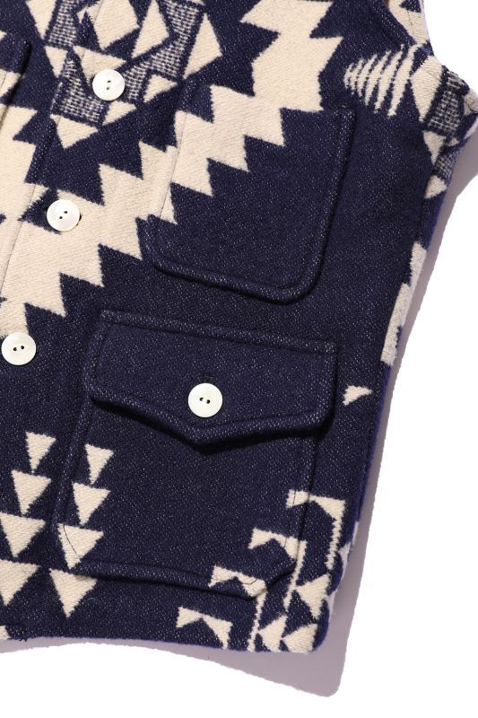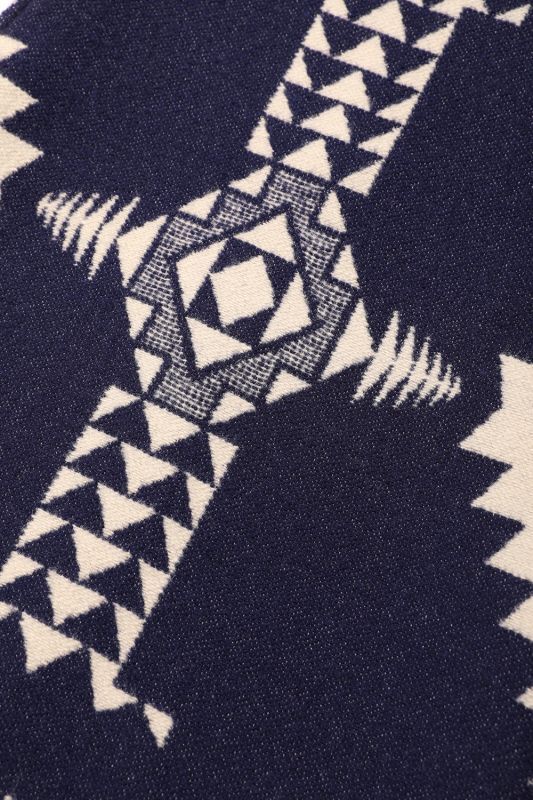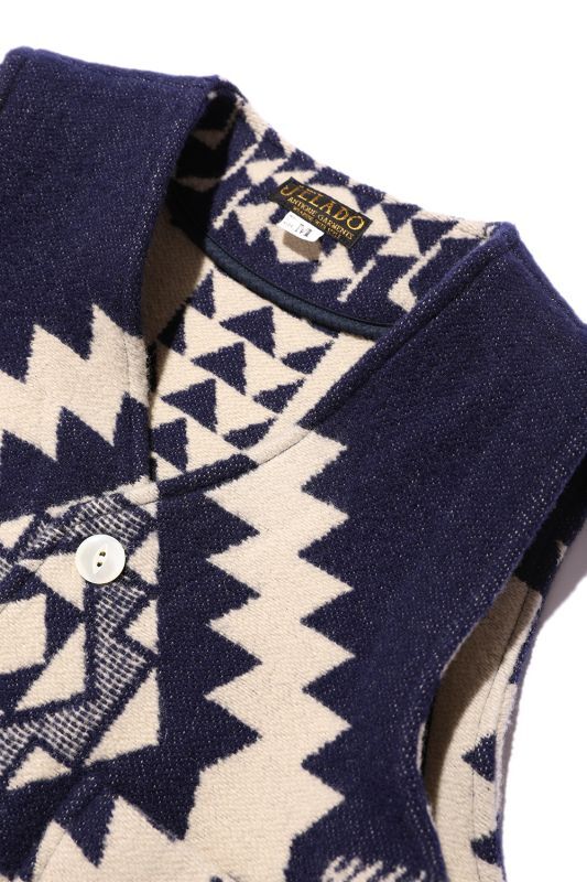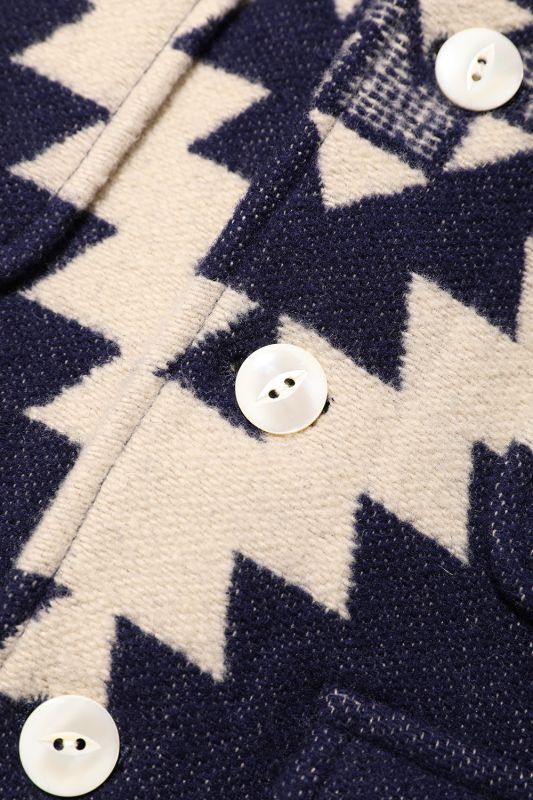 素材は1920年代にあった非常に珍しい黒ベースのネイティブ柄のブランケットジャケットの柄を再現しました。
